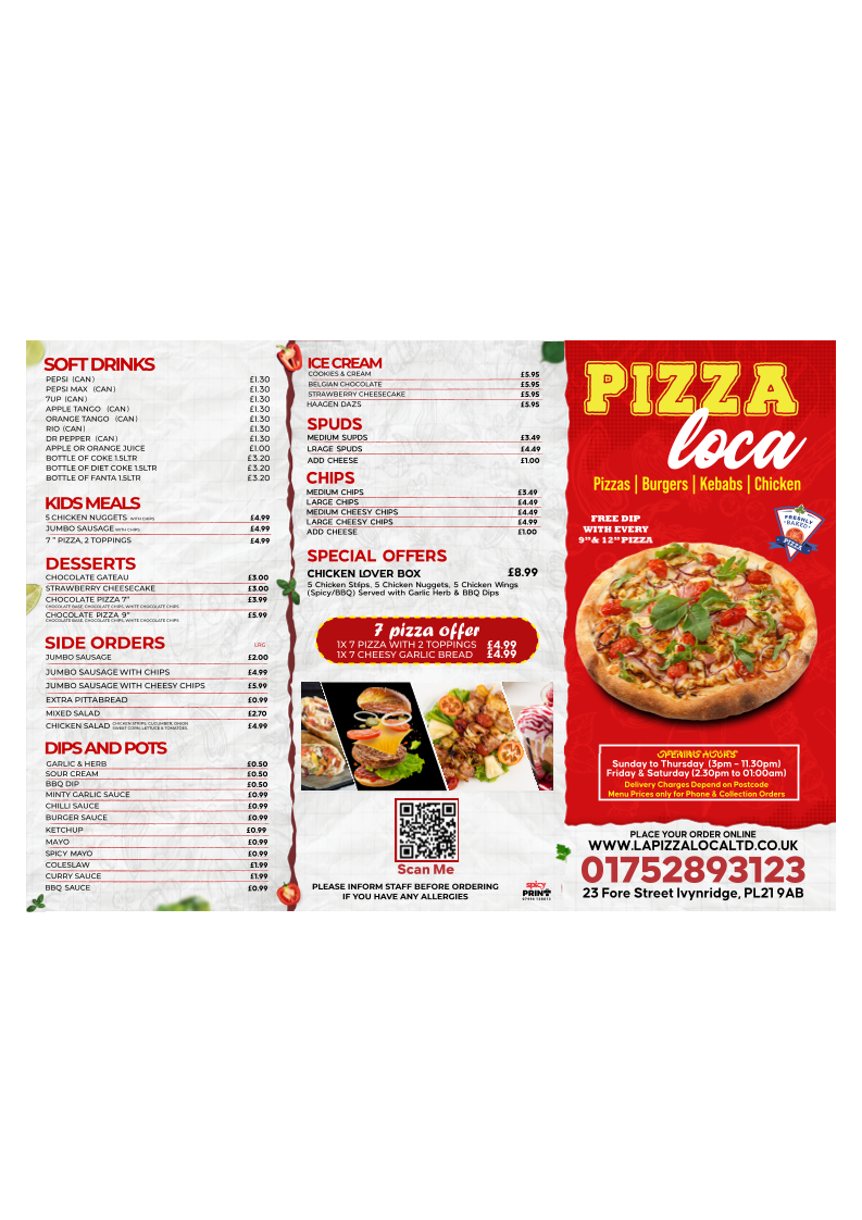 Introducing the menu at Pizza Loca - 23 Fore St, where the aroma of freshly baked pizza beckons you in! Located in Ivybridge, this gem offers an array of delectable options that cater to every palate.